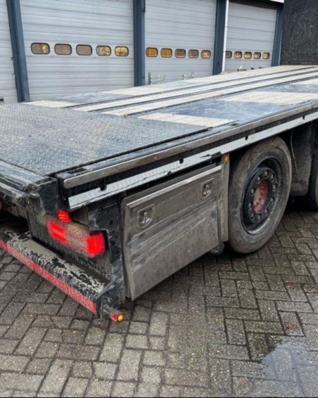 Na een eerste inspectie is de vrachtwagen op onze richtbank geplaatst. Daar hebben we het chassis nauwkeurig gericht en alle assen opnieuw uitgelijnd, zodat de basis weer exact op maat stond.